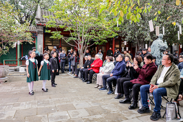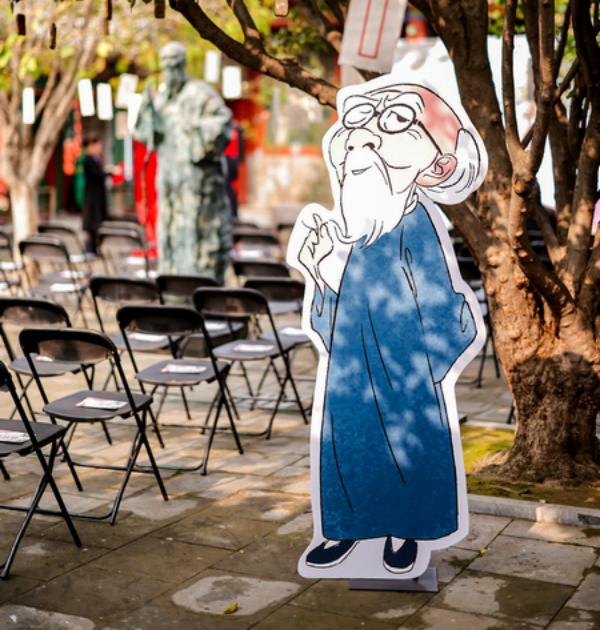 A comic of Qi Baishi in the courtyard of the Memorial Hall of his former residence. [Photo provided to chinadaily]